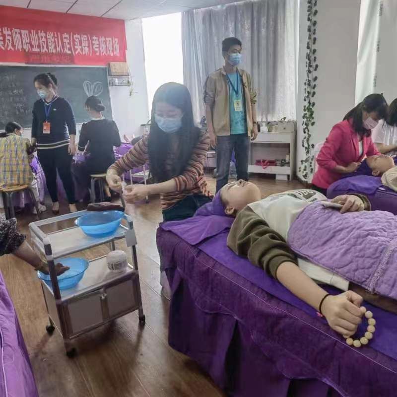 2022年9月24日襄阳市美发美容协会开展职业美容师、美发师职业技能等级认定评价考试,市职业技能鉴定中心张桂科长,樊城区人社局宋耀辉科长带队进行巡视。