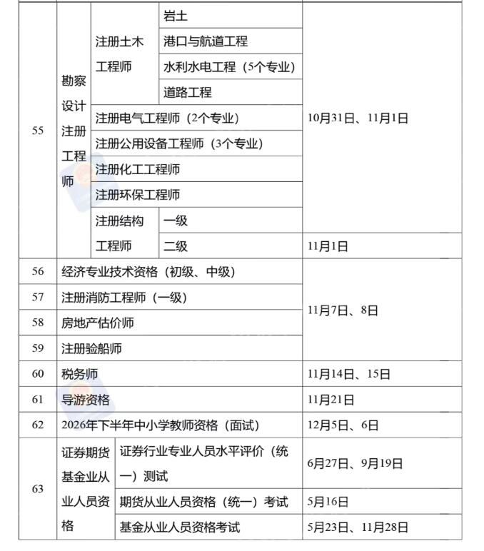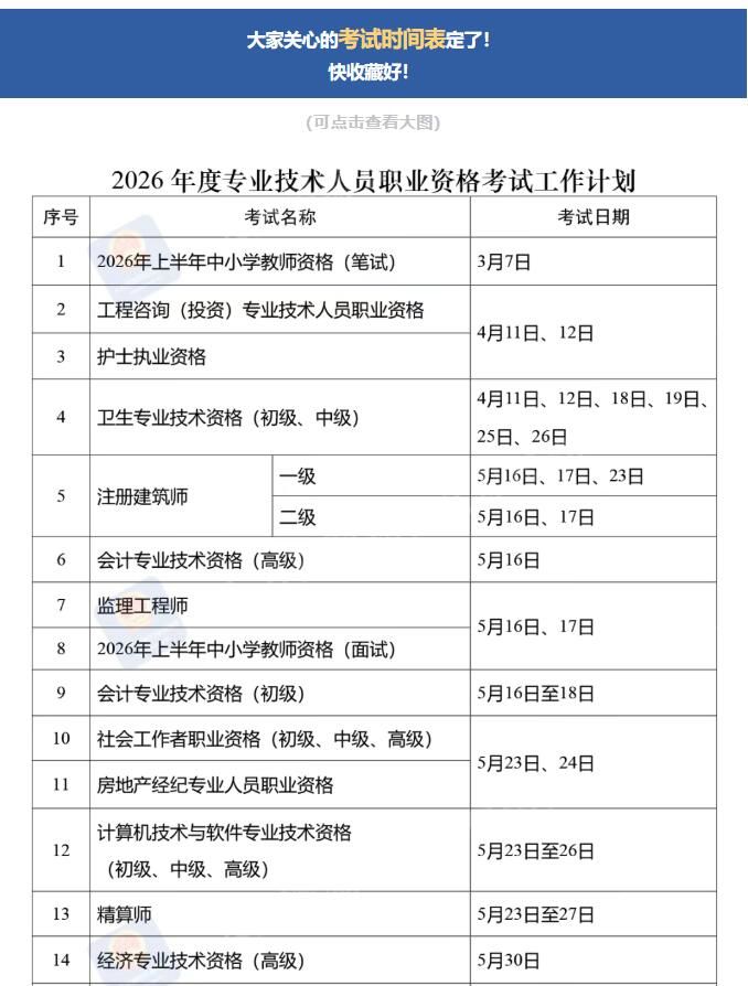 定了!2026年度专业技术人员职业资格考试时间表公布→